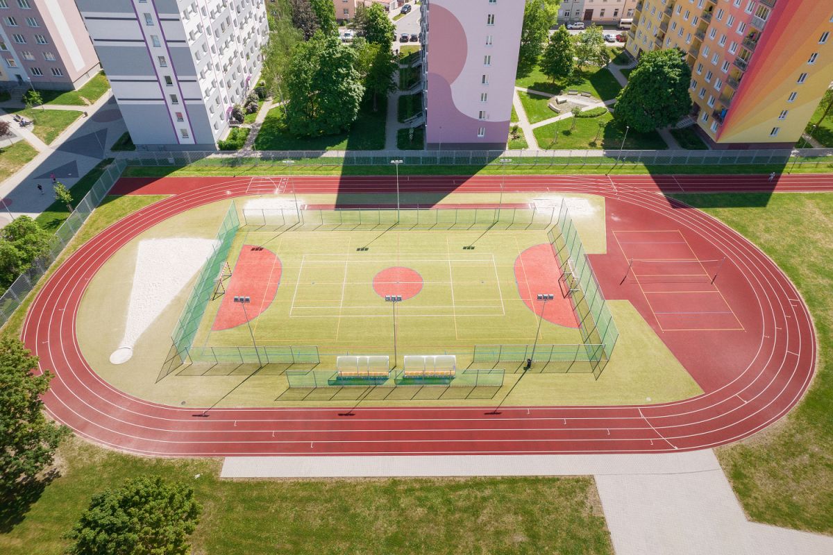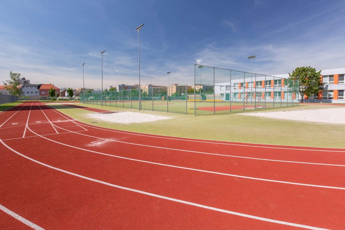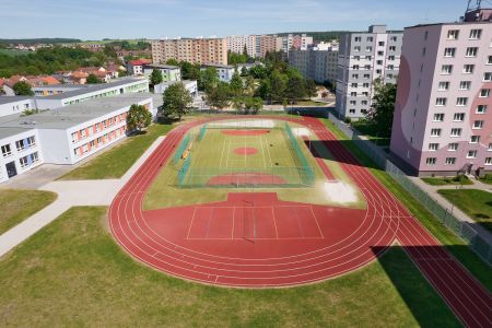 Výstavba víceúčelového hřiště s umělým trávníkem včetně oplocení, osvětlení a přilehlých sportovních ploch. Součástí stavby je atletický ovál s technickými sektory, realizace odvodnění areálu a zpevněné plochy ze zámkové dlažby.