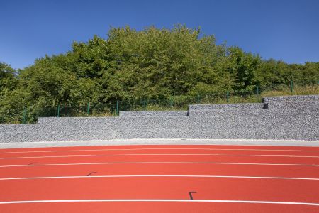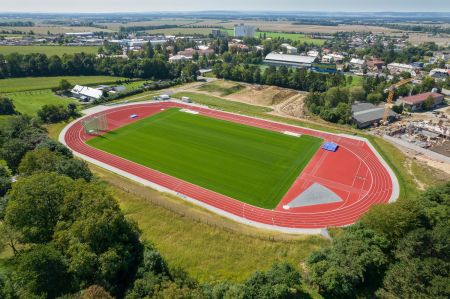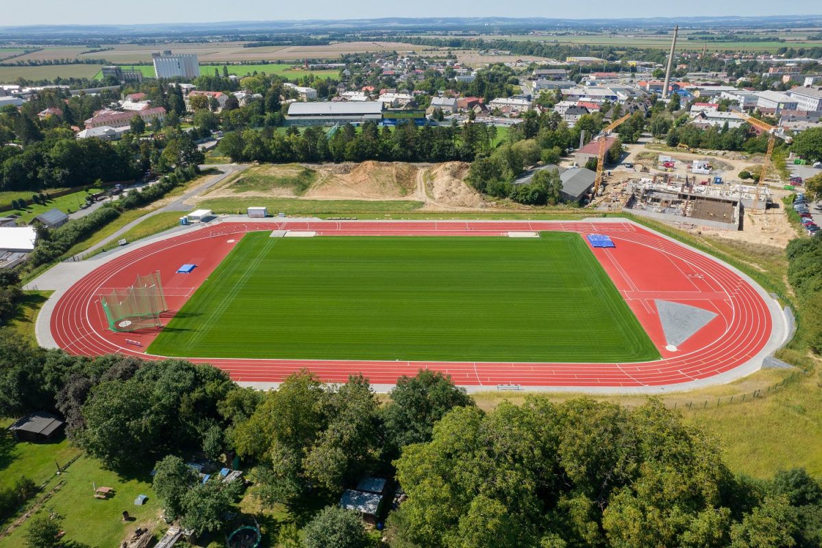 Realizace atletického oválu o 6-ti drahách, samotná délka oválu je 400 m. Součástí stavby jsou také technické sektory s propustným i nepropustným atletickým povrchem, realizace přírodní travnaté plochy uvnitř oválu, hrubých terénních úprav včetně stabilizace zemní pláně pojivem, odvodnění ploch drenážním a kanalizačním systémem, realizace podkladních štěrkových vrstev a drenážních asfaltů, prefabrikované železobetonové akumulační nádrže, závlahového systému, gabionové opěrné stěny, zpevněných ploch z betonové dlažby, areálového oplocení, dodání a montáž sportovního vybavení a realizace terénních a sadových úprav.