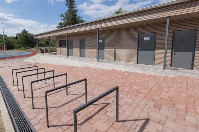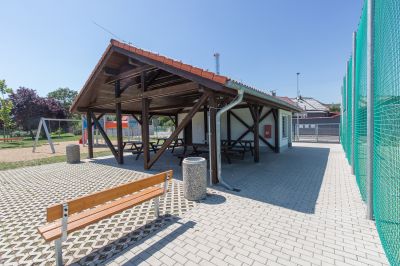 Realizace pokládky zámkové dlažby včetně zatravnění ploch a výstavby budovy zázemí. Součástí stavby je také výstavba tribuny a fotbalového hřiště se sportovním povrchem z umělého bezzásypového trávníku na EPP podložce, atletická...