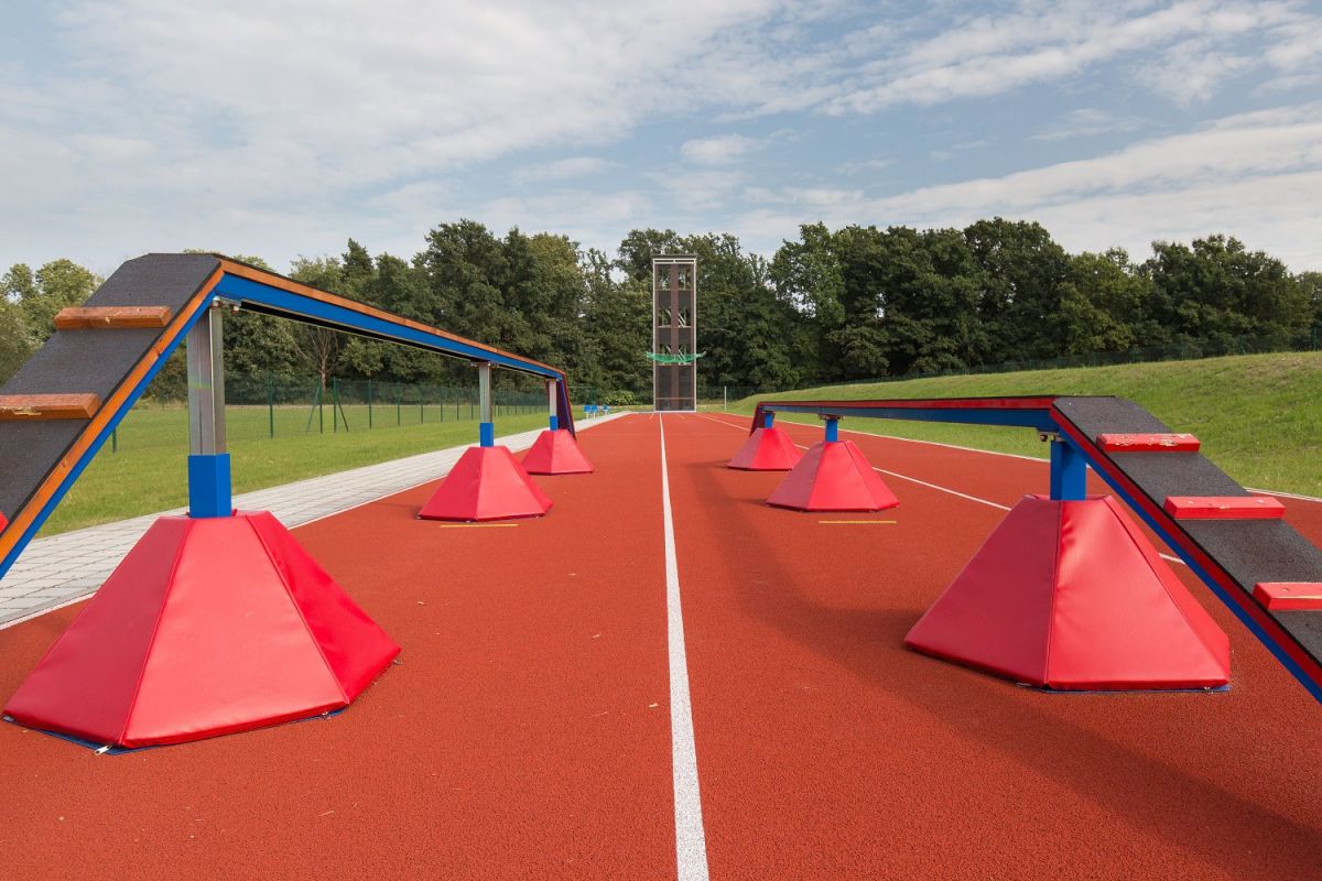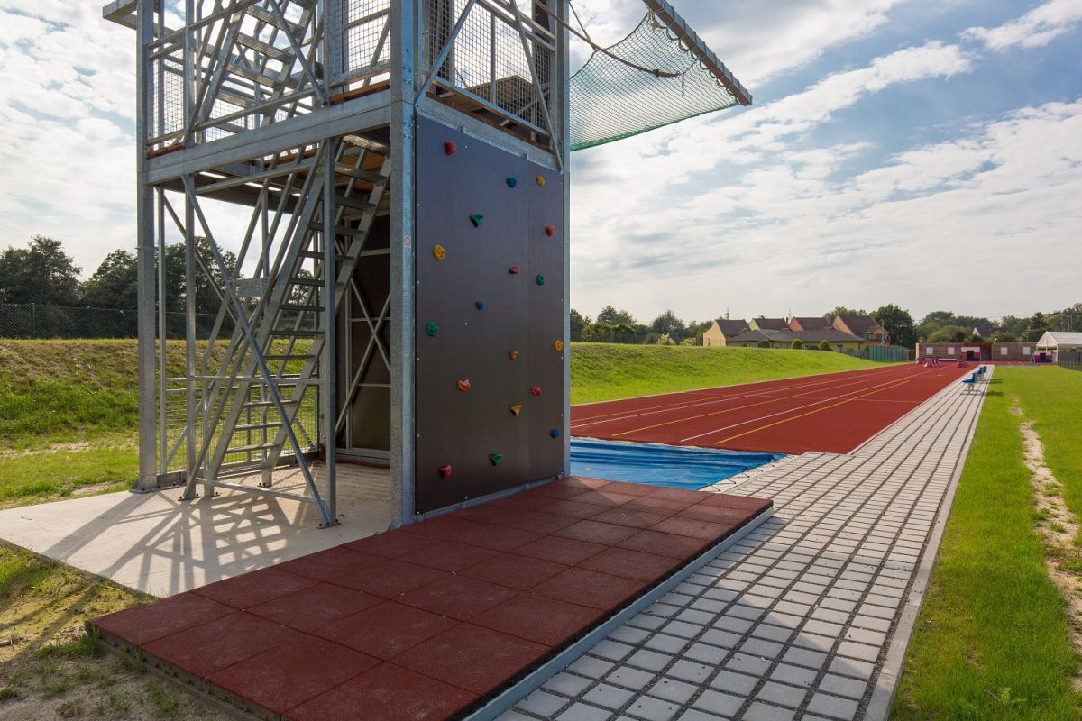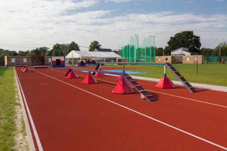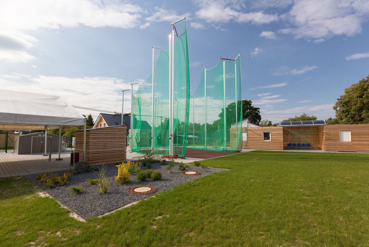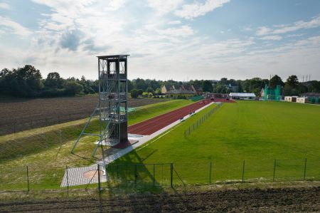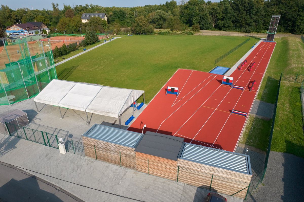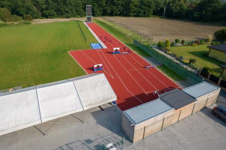 Realizace terénních úprav a úprav pláně, modelace zemních valů, výstavba běžecké dráhy s umělým vodopropustným polyuretanovým povrchem včetně lajnování a drenážních a podkladních vrstev, podložka realizována ze syntetického asfaltu, vybudování sektorů pro vrh koulí, vrh diskem/kladivem a sektoru pro skok daleký s doskočištěm včetně lapačů písku. Součástí stavby je realizace zpevněné plochy s betonovou zámkovou/drenážní dlažbou, založení trávníku, montáž automatické závlahy včetně osazení akumulačních nádrží, montáž skladových a sanitárních kontejnerů včetně napojení na vodovod, kanalizaci a elektrickou síť, oplocení včetně vstupních bran a branek, monolitická konstrukce doskočiště pod hasičskou věží a výměna stožárů pro osvětlení včetně dodávky nových svítidel.
