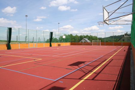 Výstavba víceúčelového multifunkčního hřiště s polyuretanovým povrchem a s oplocením.