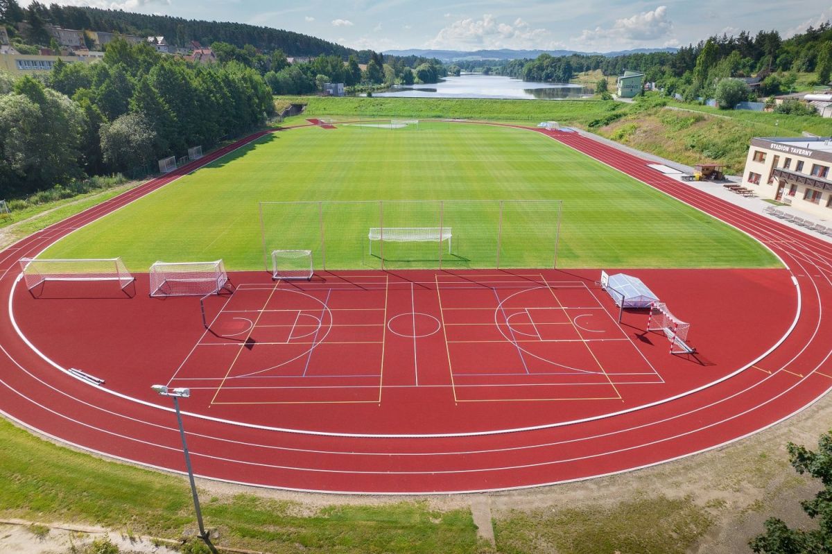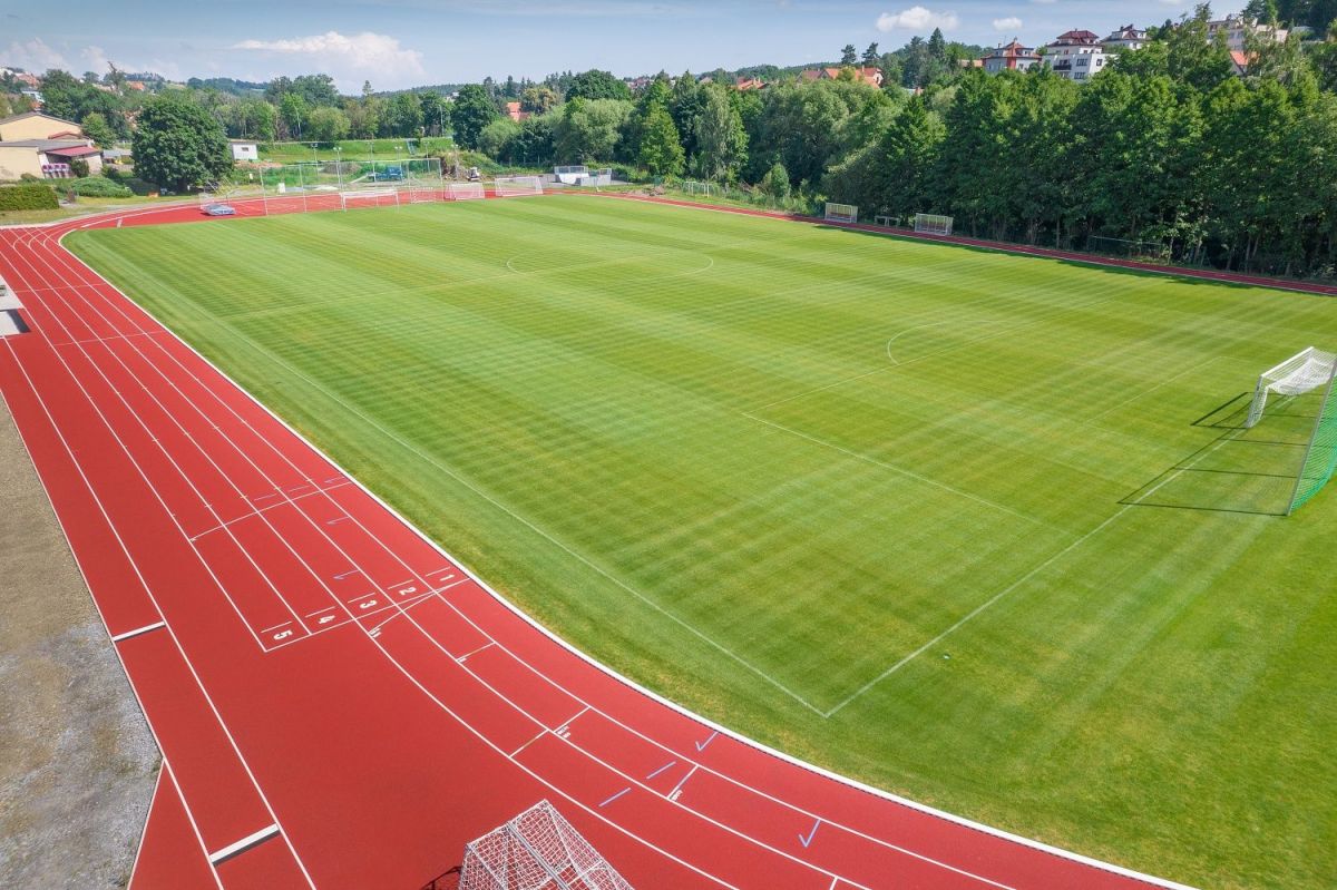 Kompletní rekonstrukce povrchu atletické dráhy a sektorů s vodopropustným PUR povrchem. Součástí stavby je také rekonstrukce fotbalového travnatého hřiště, zpevněných ploch, tribuny a dodávka sportovního vybavení.