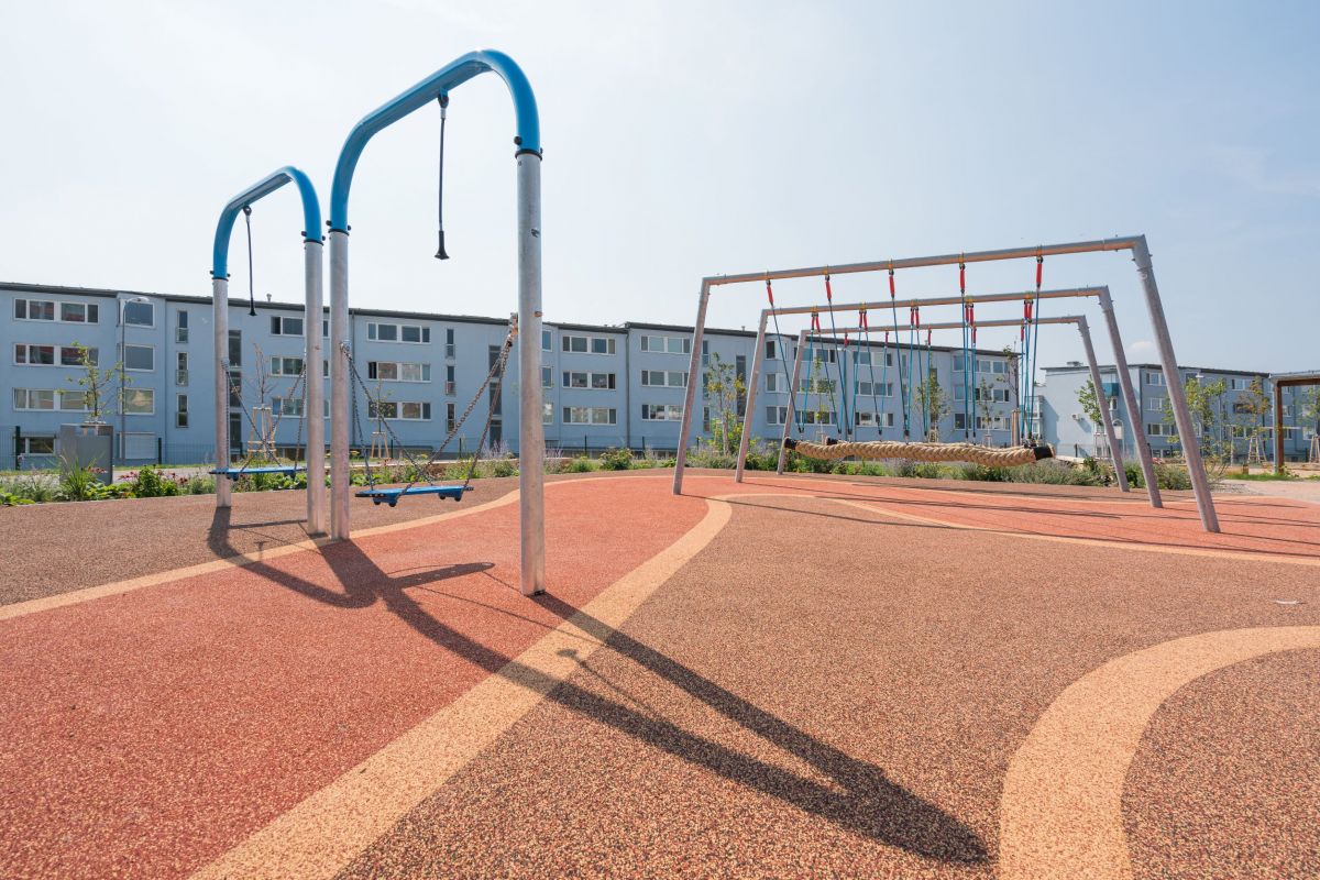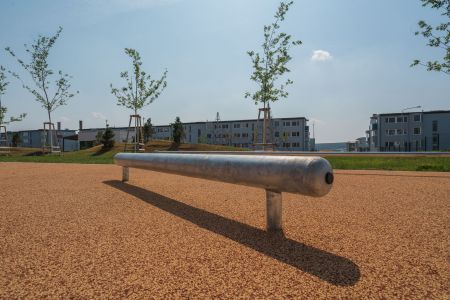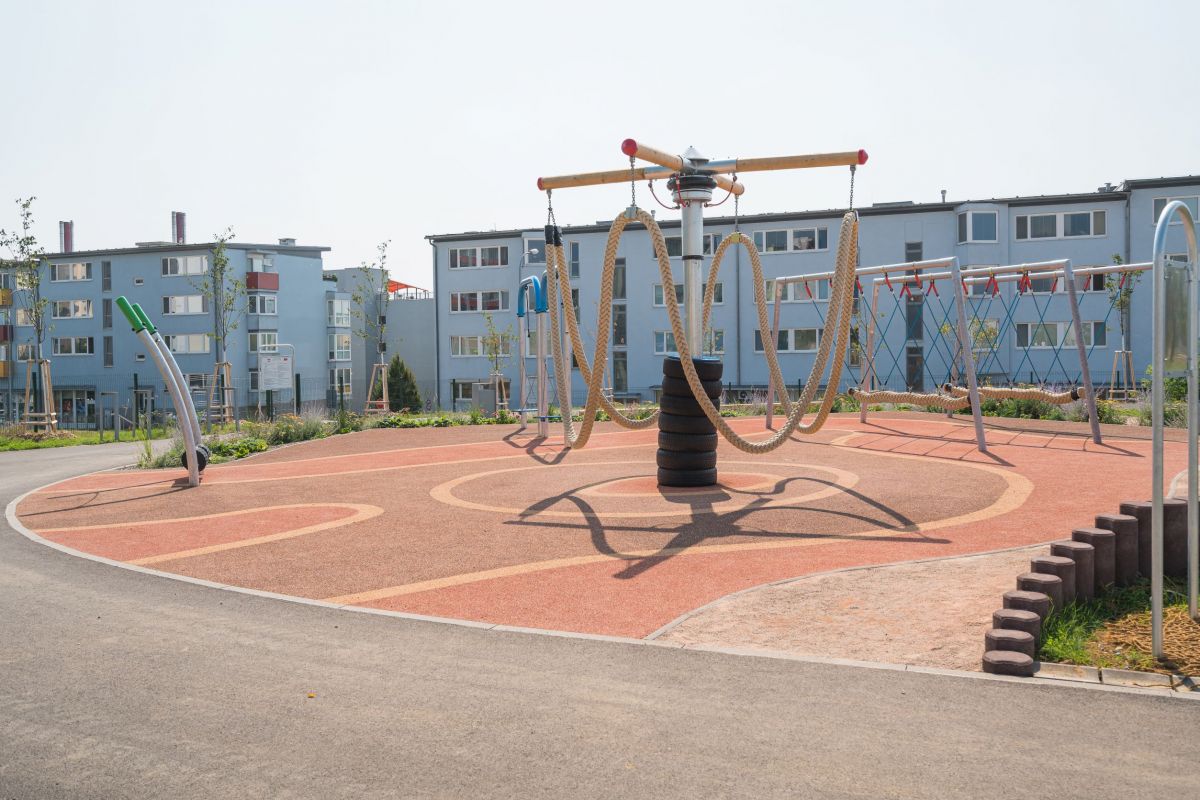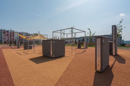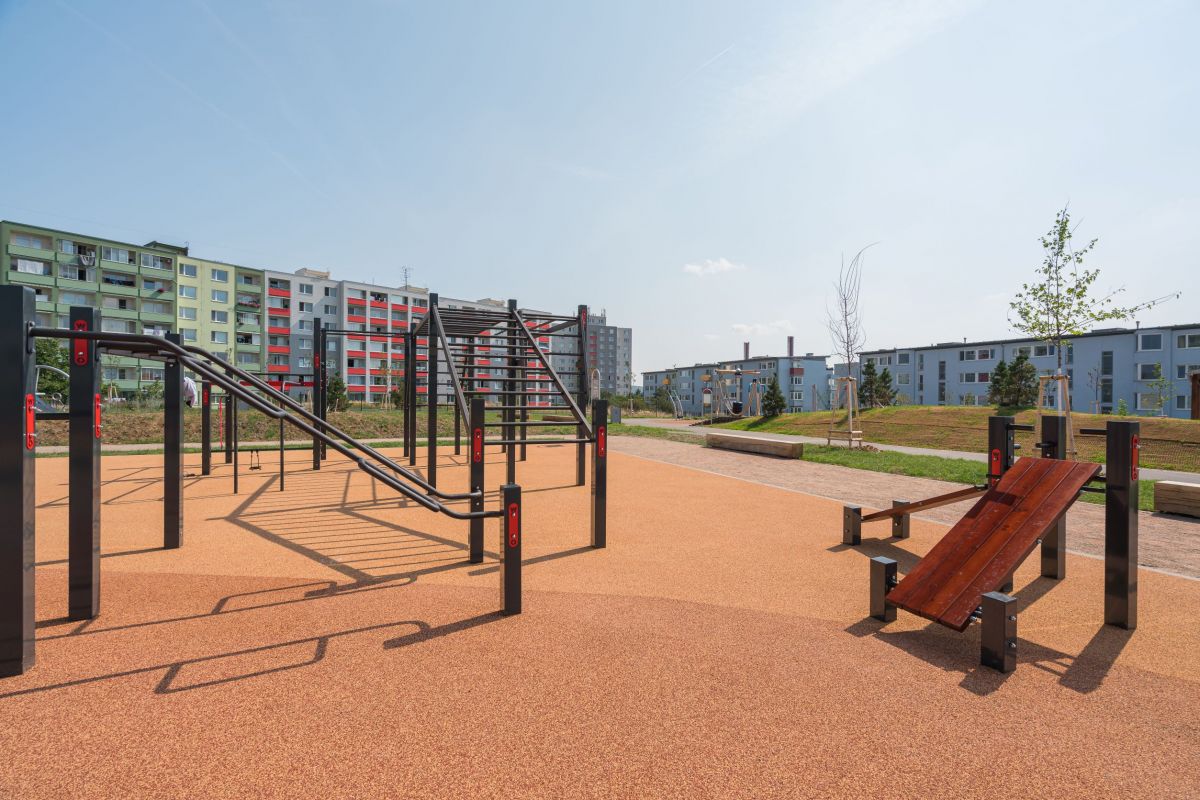 Realizace dětských hřišť s bezpečnostními PUR/EPDM povrchy, modulace umělých 3D herních atrakcí a barevné grafiky.