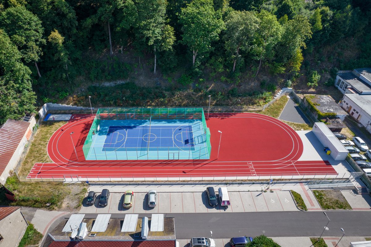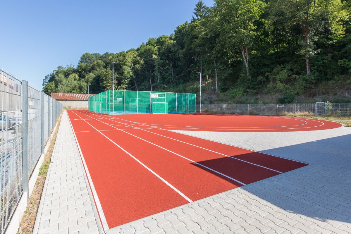 Realizace běžeckého oválu a víceúčelového hřiště s EPDM povrchem v rozsahu 1 699 m2 vč. odvodnění, podkladních štěrkových vrstev, asfaltových vrstev, lajnování, sportovního vybavení a oplocení z ocelových konstrukcí a polypropylenových sítí. Dodávka a montáž sektoru vrhu koulí, pískového doskočiště pro skok daleký, areálového oplocení (207 m2), zámkové dlažby (160 m2) a 2 ks kontejnerů se sociálním zázemím a skladem.