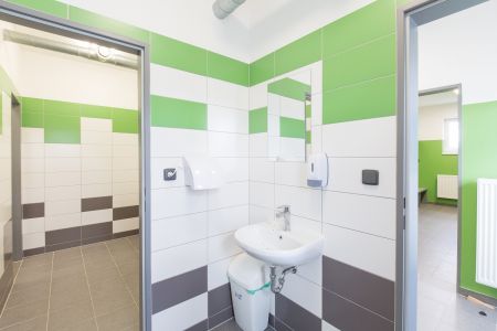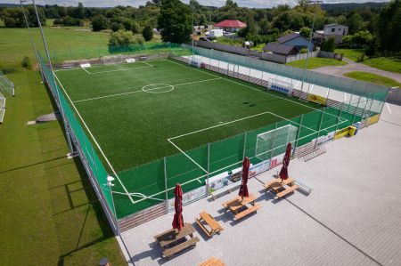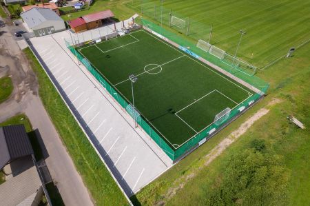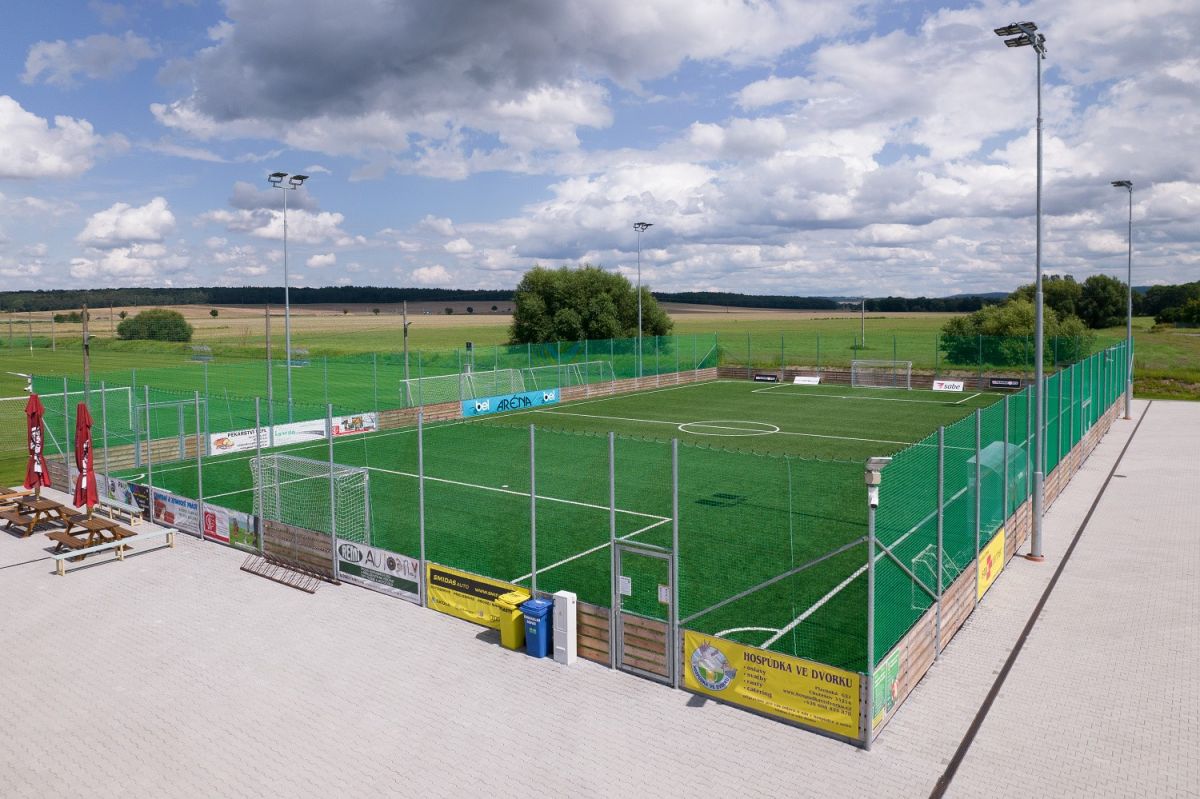 Realizace zděné jednopatrové budovy, součástí stavby je dodávka a montáž střešní krytiny, sádrokartonových konstrukcí, zdravotně technické instalace, elektroinstalace, hromosvodu, vzduchotechniky, ústředního vytápění, domovního rozvodu plynu, obkladů, dlažeb, oken a dveří. Realizace hřiště pro malou kopanou s umělým trávníkem s pískovým a EPDM granulátovým zásypem včetně odvodnění, podkladních vrstev, sportovního vybavení, oplocení z ocelových sloupků a dřevených mantinelů, polypropylenových sítí a umělého LED osvětlení. Realizace zámkové dlažby včetně podkladních vrstev a cementovápenné stabilizace.