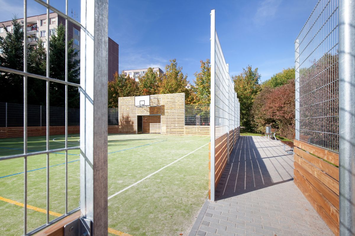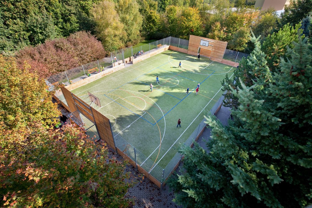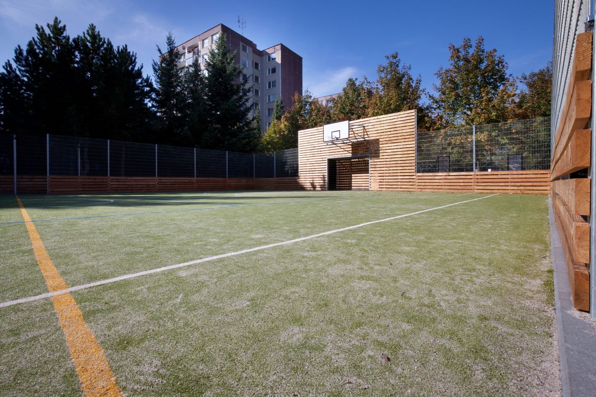 Realizace víceúčelového hřiště s umělým trávníkem včetně lajnování.