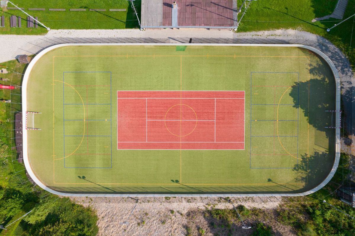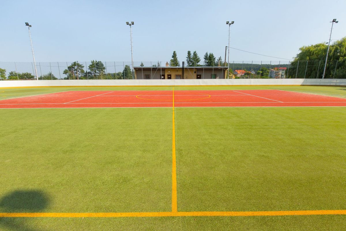 Realizace opravy plochy víceúčelového hřiště s povrchem z umělého trávníku s křemičitým vsypem včetně realizace drenáží a podkladních vrstev, dodávky plastového mantinelu a ochranného oplocení.
