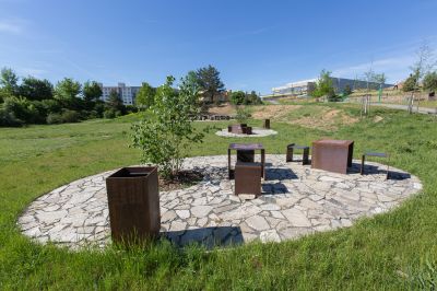 Revitalizace parku. Realizace mlatových cest, zemní práce, kácení a výsadba stromů, výsadby sazenic, založení parkového trávníku, veřejné osvětlení, modulace terénu z betonu - povrch EPDM, velkoformátová dlažba a ošetření stávajících...