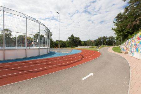 Realizace rekonstrukce sportovního areálu, jehož součástí je atletický ovál, víceúčelové hřiště a další sportovní plochy, fotbalové hřiště z přírodním trávníkem vč. výběhů z umělého trávníku, asfaltová in-line dráha, zpevněné dlážděné plochy vč. odvodnění, oplocení sportovišť, areálové oplocení, bourací a zemní práce, podkladní konstrukční štěrkové vrstvy a drenážní asfalty, kanalizační a drenážní systém odvodnění, akumulační jímky a vsakovací objekt, automatický závlahový systém fotbalového hřiště, elektroinstalace a osvětlení areálu a sportovišť, kanalizační přípojka vč. přečerpávací stanice, vodovodní a elektro přípojka, gabionová terénní tribuna k sezení založená na mikropilotech, sportovní vybavení, dětské herní a workoutové cvičící prvky, mobiliář, terénní a sadové úpravy včetně výsadby stromů a keřů. Dále je součástí stavby také výstavba zděného jednopodlažního objektu zázemí s rozvody TZB, tepelné čerpadlo (venkovní a vnitřní jednotky) a solární panely.