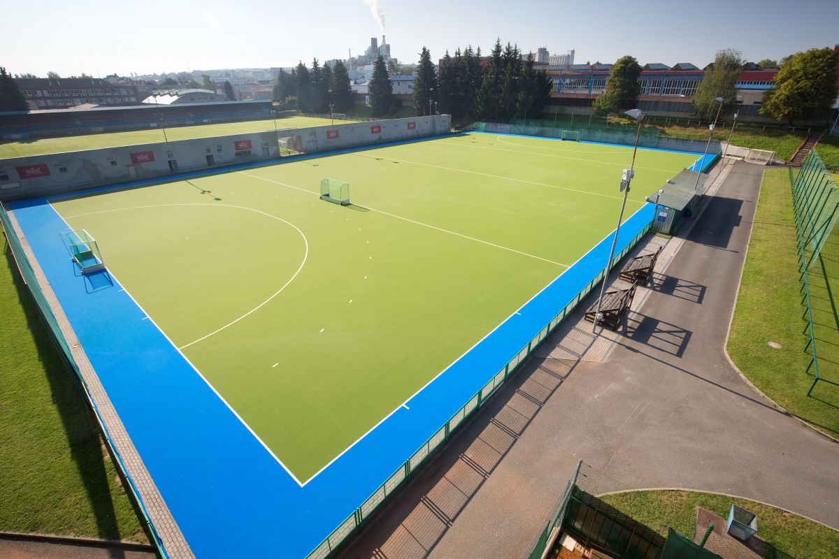 Rekonstrukce hřiště pro pozemní hokej, realizace nového povrchu z umělé trávy včetně oprav PU podložky a terénních úprav.