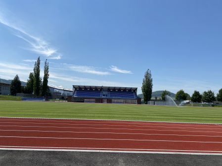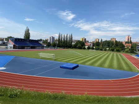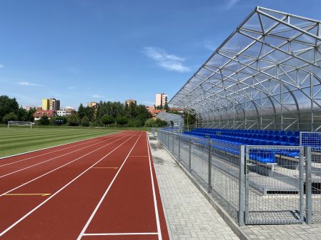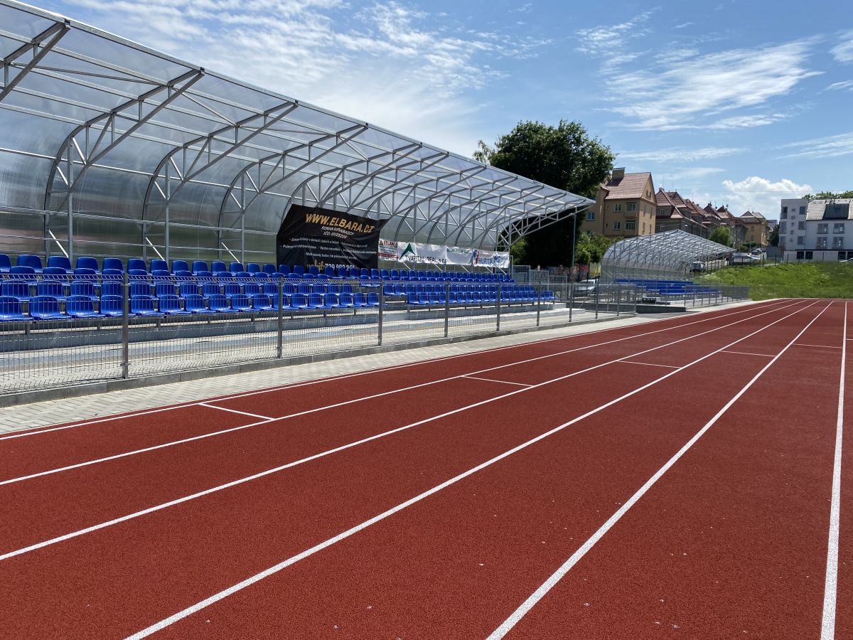 Výstavba atletického oválu o délce 400 m včetně lajnování. Realizace umělého dvouvrstvého odpruženého povrchu vodopropustného i vodonepropustného. Úprava a modernizace atletických sektorů (vrh koulí, skok do dálky, trojskok, skok do výšky, hod oštěpem). Založení nové travnaté hrací plochy s předpěstovaným travním drnem, včetně drenážního systému a automatické závlahy s nadzemní akumulační nádrží. Osazení zastřešených a nezastřešených tribun a modulárních skladových kontejnerů. Součástí stavby je i výměna oplocení areálu, zemní práce, oprava a doplnění zpevněných ploch.