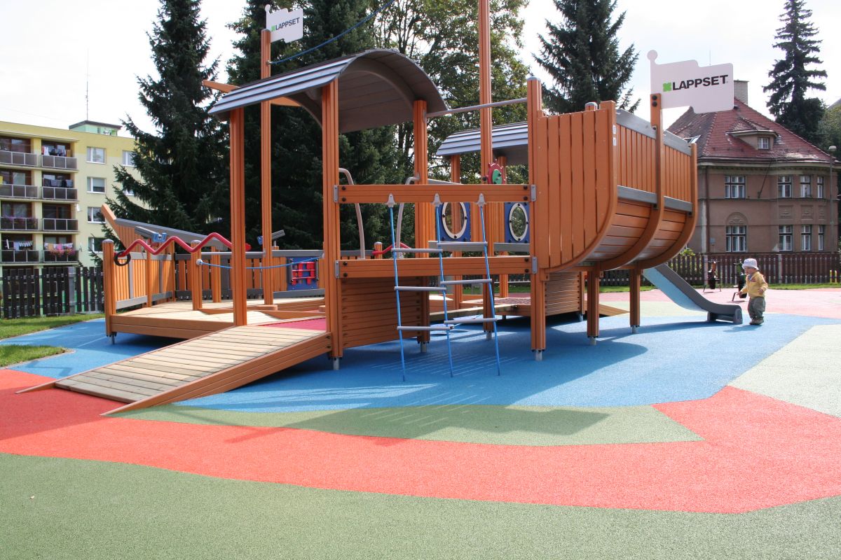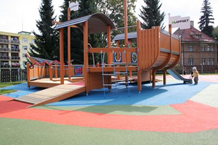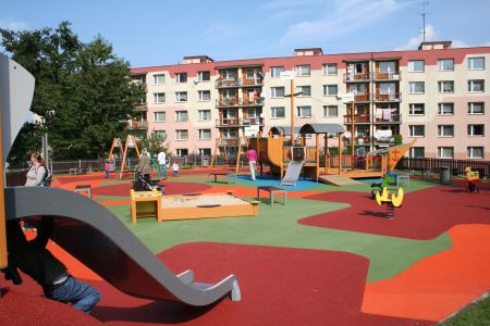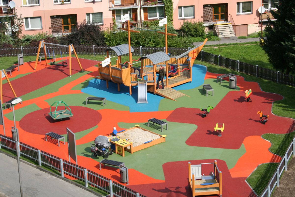 Rekonstrukce dětského hřiště pro věkovou kategorii 5 - 15 let, realizace dodávky a pokládky bezpečnostní dopadové plochy.