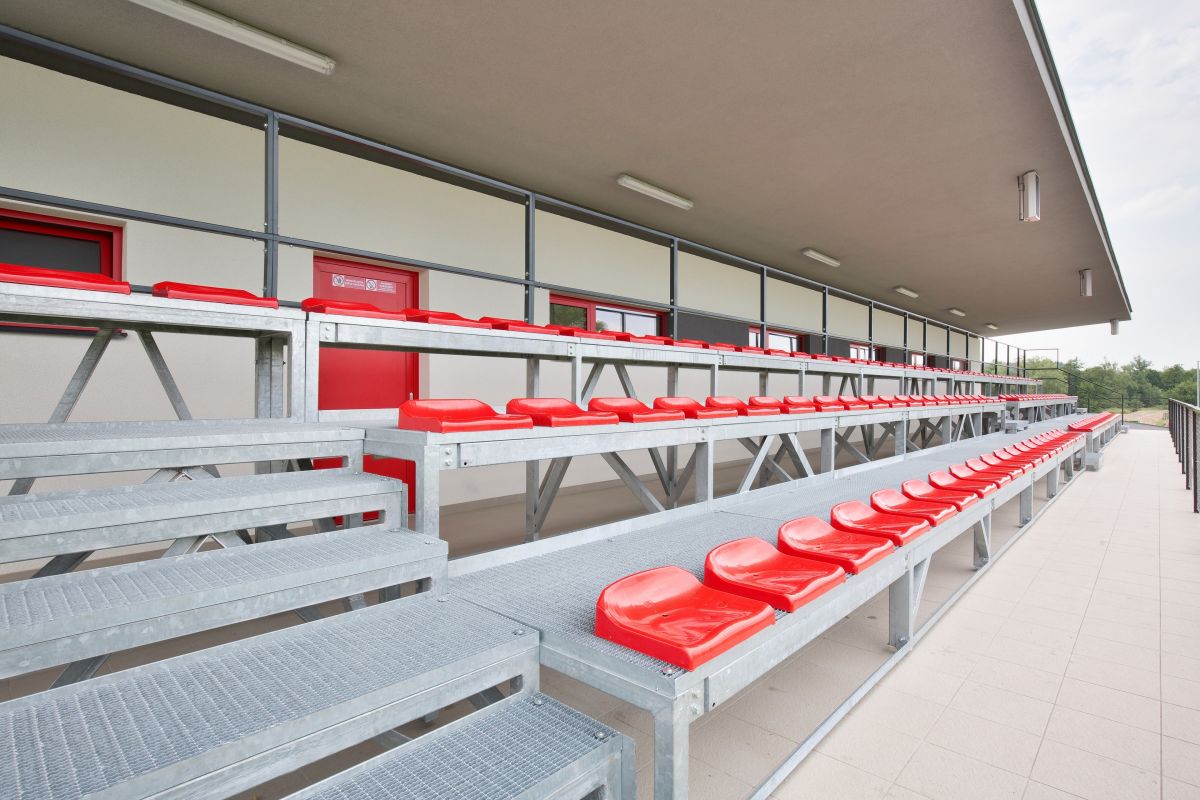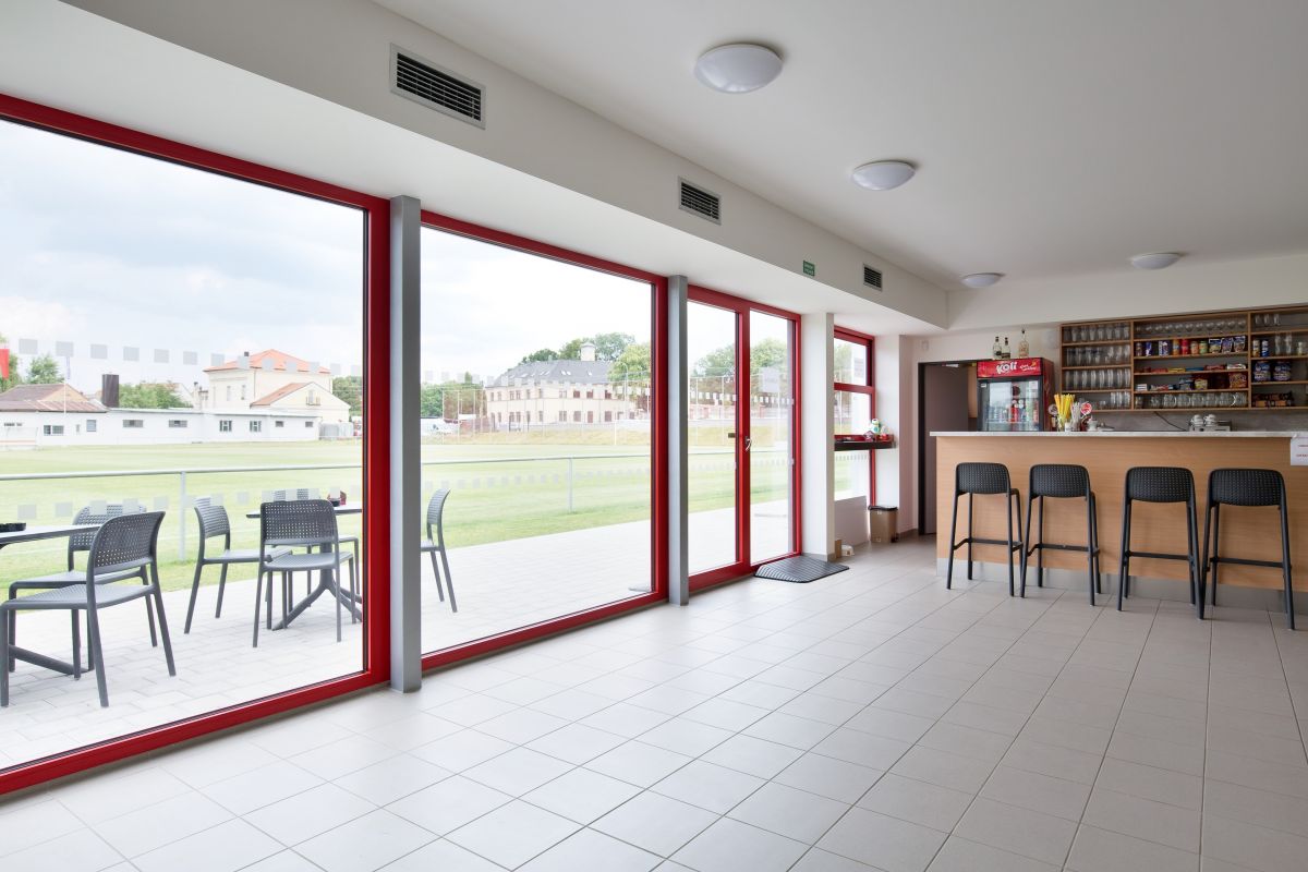 Novostavba zázemí fotbalového klubu FC Dobřany s hledištěm, včetně nových travnatých hřišť s oplocením, zavlažováním, přidružených objektů (stánek, sklad, věž) a přístupových komunikací a parkovišť.