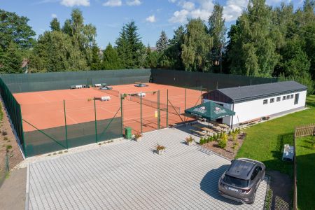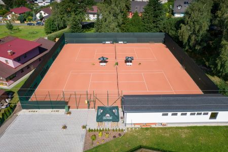 Realizace tenisových kurtů se sportovním polyuretanovým povrchem včetně podkladních vrstev a odvodnění. Součástí stavby byla rekonstrukce oplocení a novostavba zázemí tenisových kurtů, konkrétně se jednalo o šatny a sociální zařízení. Dále byly součástí stavby také přípojky inženýrských sítí, výstavba přístupové komunikace a parkovací plochy.