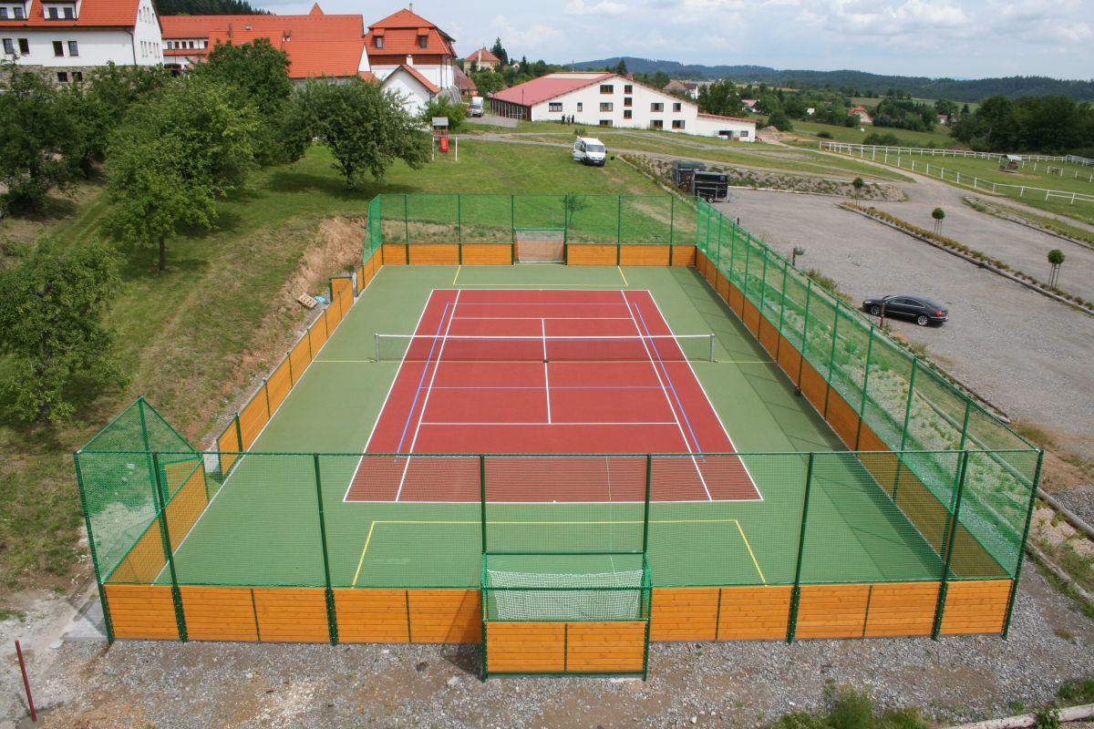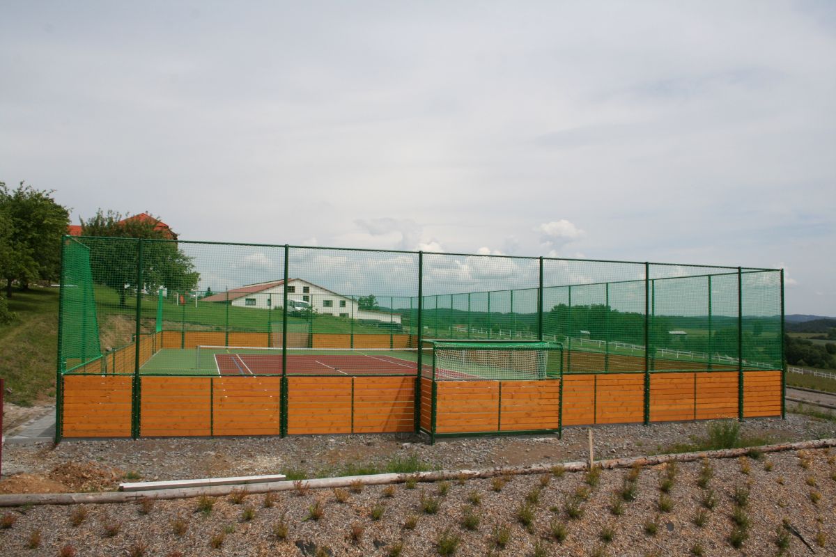 Výstavba sportoviště se sportovním umělým povrchem EPDM včetně lajnování a oplocení s dřevěným mantinelem.