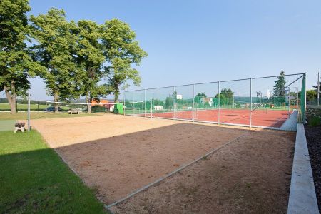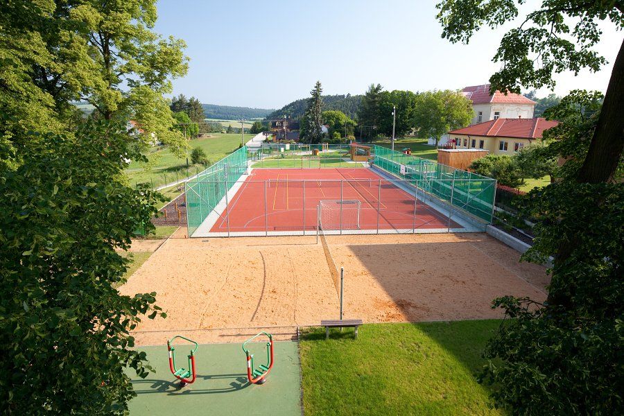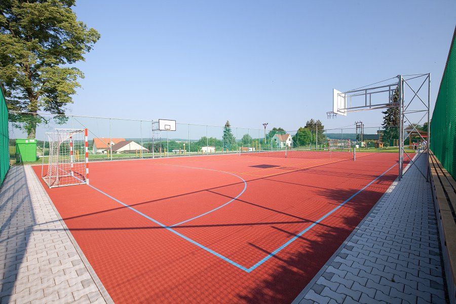 Kompletní výstavba sportovního areálu. Multifunkční hřiště - pokládka elastické podložky ET, polyuretanového povrchu EPDM, oplocení, chodníky, sportovní vybavení, mobiliář. Volejbalové hřiště - povrch, sportovní vybavení. Fitness prvky - D+M fitness zařízení dopadové plochy. Dětské hřiště - D+M dětských herních prvků, dopadové plochy, altán, mobiliář, areálové oplocení.