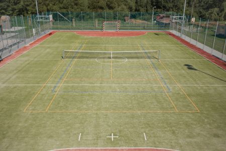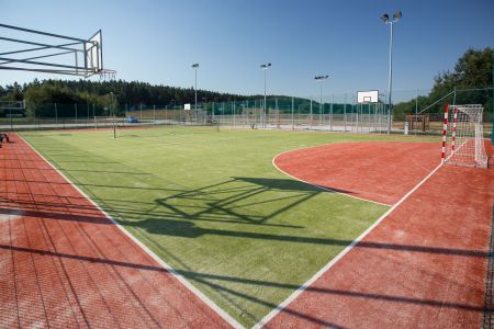 Realizace víceúčelového hřiště pro malou kopanou, házenou, tenis, volejbal, nohejbal a basketbal s použitím umělého sportovního trávníku s křemičitým vsypem a elastickým propustným podkladem včetně lajnování. Součástí stavby je beachvolejbalové hřiště, sportovní běžecká dráha s tartanovým povrchem, dětské hřiště s provazovými prvky (prolézačka s klouzačkou, závěsná a vahadlová houpačka, houpadlo na pružině, malý kolotoč) a pískoviště.