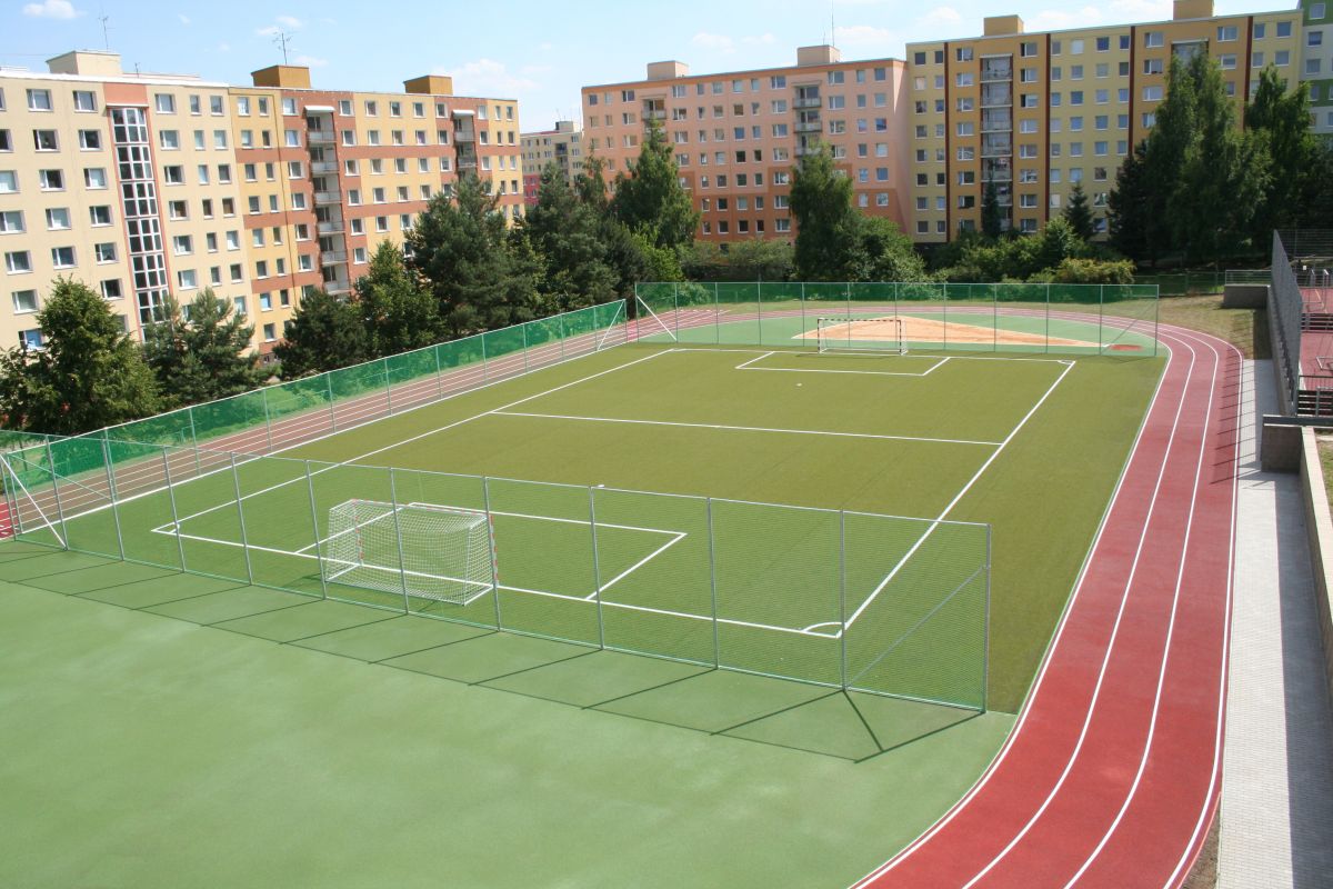 Dodávka a pokládka PUR povrchu na atletickou dráhu, dodávka a pokládka umělého trávníku na fotbalové hřiště, realizace retopingu víceúčelových hřišť včetně oplocení, lajnování a sportovního vybavení.