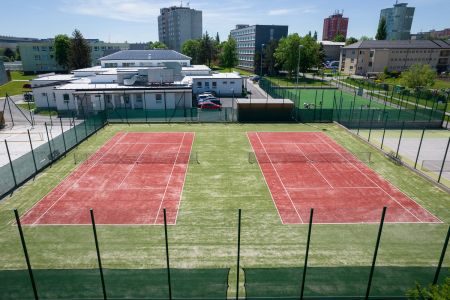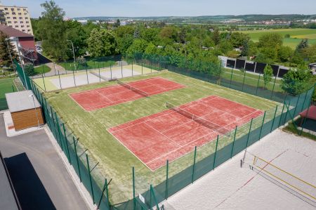 Realizace rekonstrukce dvou tenisových kurtů s umělým trávníkem včetně lajnování a výměny podkladních vrstev z kameniva. Součástí stavby je dodávka a montáž sportovního vybavení.