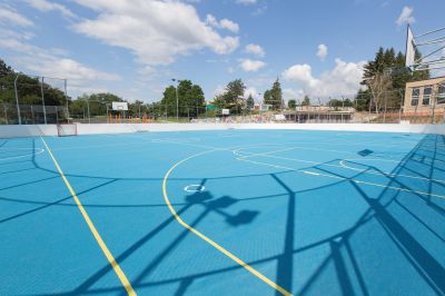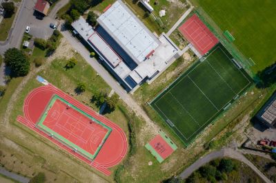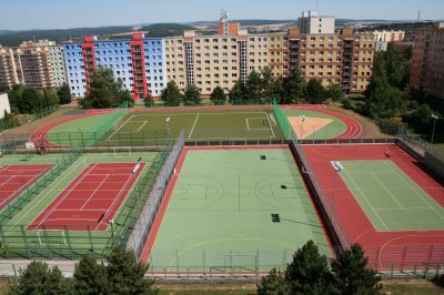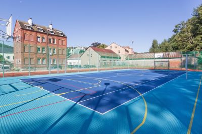 Realizace víceúčelového hřiště a atletické dráhy včetně pokládky umělých sportovních povrchů. Součástí stavby je i dodávka a montáž sportovního vybavení, pokládka umělých bezpečnostních litých povrchů na dětském hřišti...