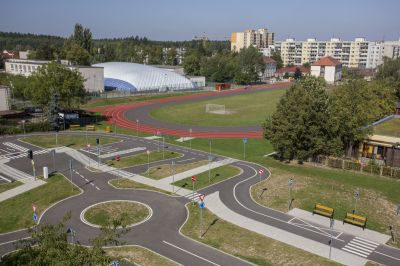 Realizace dopravního hřiště s asfaltovým povrchem a světelnou signalizací. Součástí stavby je také běžecký ovál s PUR povrchem, in-line dráha s novým asfaltovým povrchem, dětské hřiště včetně dodávky a montáže herních prvků,...