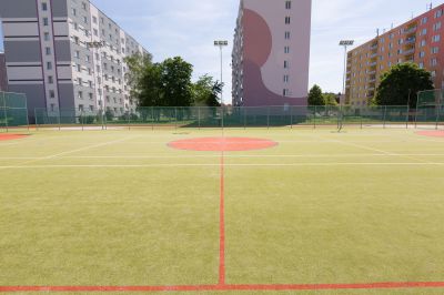 Realizace víceúčelového hřiště pro malou kopanou, házenou, tenis, volejbal, nohejbal a basketbal s použitím umělého sportovního trávníku s křemičitým vsypem a elastickým propustným podkladem včetně lajnování. Součástí stavby...