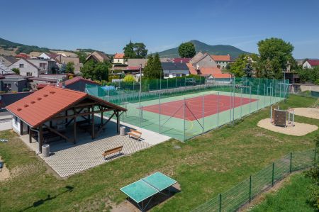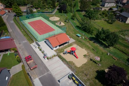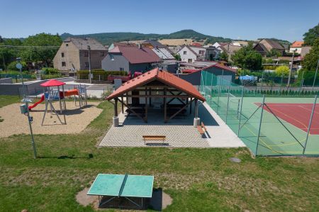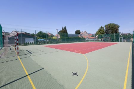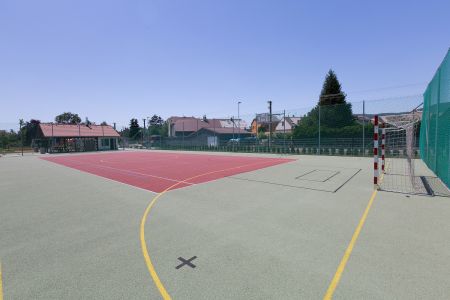 Realizace víceúčelového hřiště (cca 643 m2) s polyuretanovým povrchem včetně lajnování a oplocení. Realizace zděné budovy zázemí areálu včeně zpevněných ploch. Dodávkou jsou zemní práce, realizace drenážního systému, štěrkové vrstvy a dlažby. Dodávka a instalace herních prvků. Dodávka a montáž oplocení areálu.