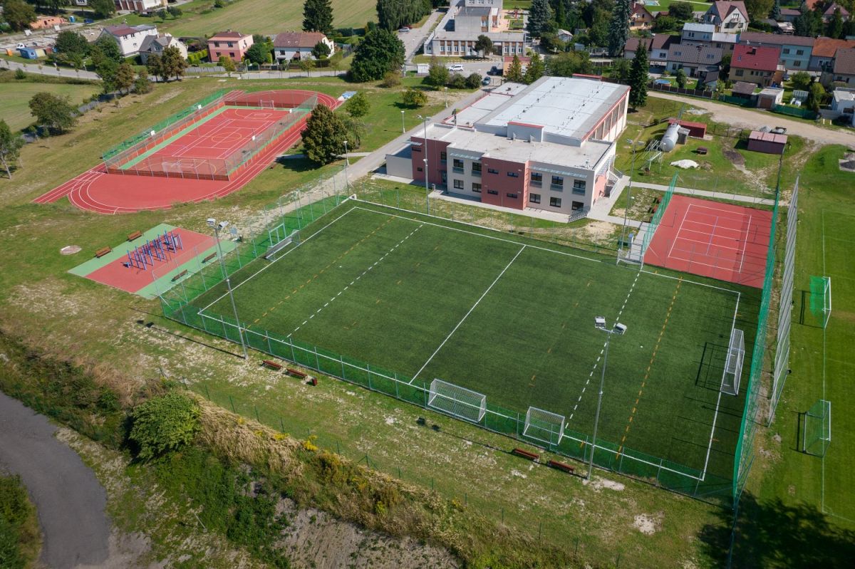 Realizace sportovního areálu SK Rudolfov - atletický ovál s vodopropustným polyuretanovým povrchem stříkaným (623,5 m2), sportovní plochy s vodopropustným polyuretanovým povrchem jednovrstvým (2044 m2), sportovní dopadová plocha pod workoutové cvičící prvky z vodopropustného polyuretanového povrchu (225 m2), realizace hřiště s umělým trávníkem 3. generace (UT3G) s pískovým a granulátovým vsypem (2100 m2), realizace zemních prací, podkladních vrstev a drenážních asfaltů, realizace odvodnění ploch (drenáže, vsakovací jímky), realizace umělého osvětlení fotbalového hřiště (osvětlenost 300 lx), dodávka a montáž sportovního vybavení, dodávka a montáž workoutových cvičících prvků, realizace oplocení sportovního areálu a hřišť, realizace terénních a sadových úprav.